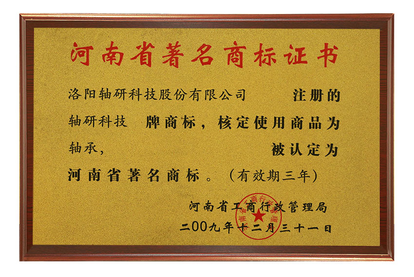 河南省著名商標(biāo)證書(shū)