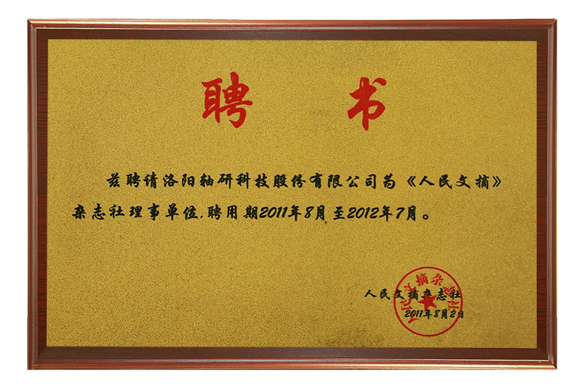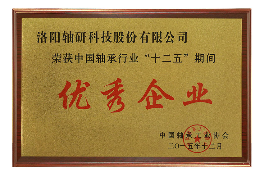 榮獲中國(guó)軸承行業(yè)“十二五”期間優(yōu)秀企業(yè)