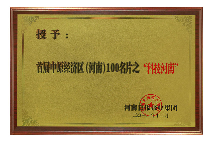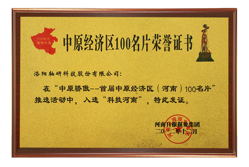 中原經(jīng)濟(jì)區(qū)100名片證書(shū)