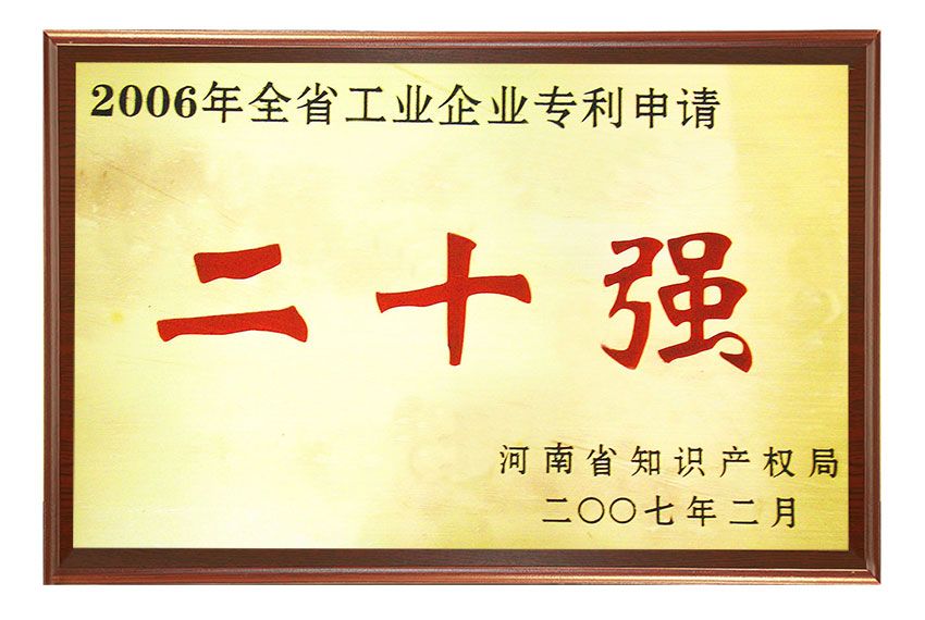 在2006年知識(shí)產(chǎn)權(quán)工作中成績(jī)突出,被評(píng)為河南省知識(shí)產(chǎn)權(quán)系統(tǒng)先進(jìn)集體