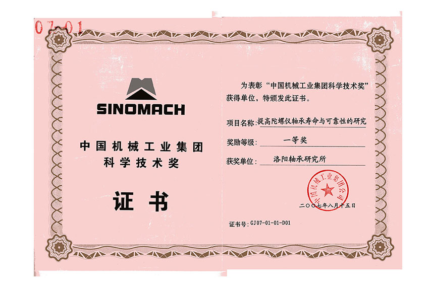 中國(guó)機(jī)械工業(yè)集團(tuán)科學(xué)技術(shù)獎(jiǎng)一等獎(jiǎng)